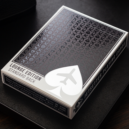 With the Standard Back version of the Lounge Edition in Tarmac Black, the playing cards showcase re-colored standard faces and have an untraditional offset classic and casino inspired back design that pays homage to the runways utilized by airlines across the globe with the black colorway. The cards are traditionally cut to provide the ability to weave or faro shuffle facedown. The tuck box exhibits premium features with a durable synthetic stock material, clear UV spot varnish, and silver foil accents.