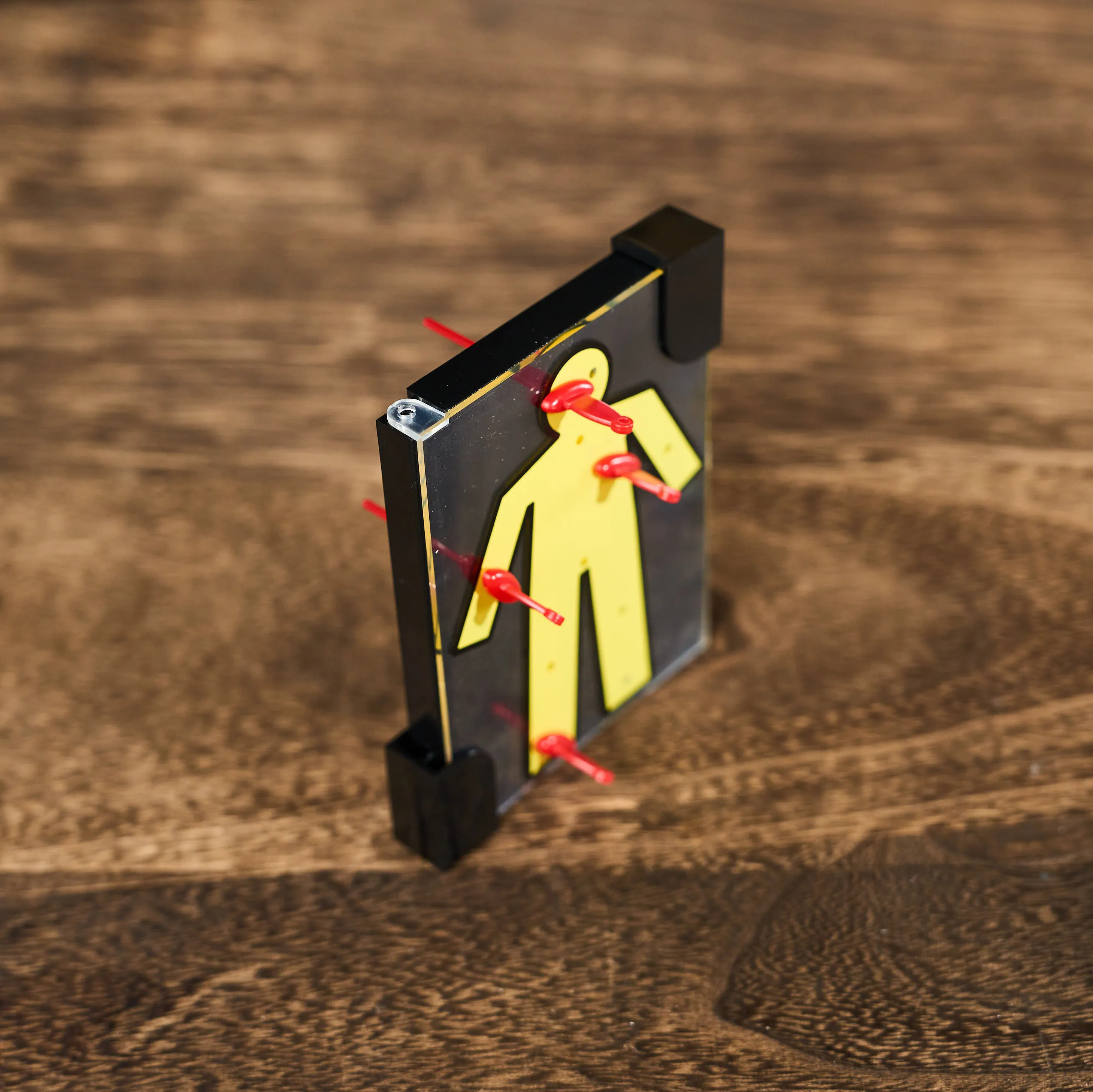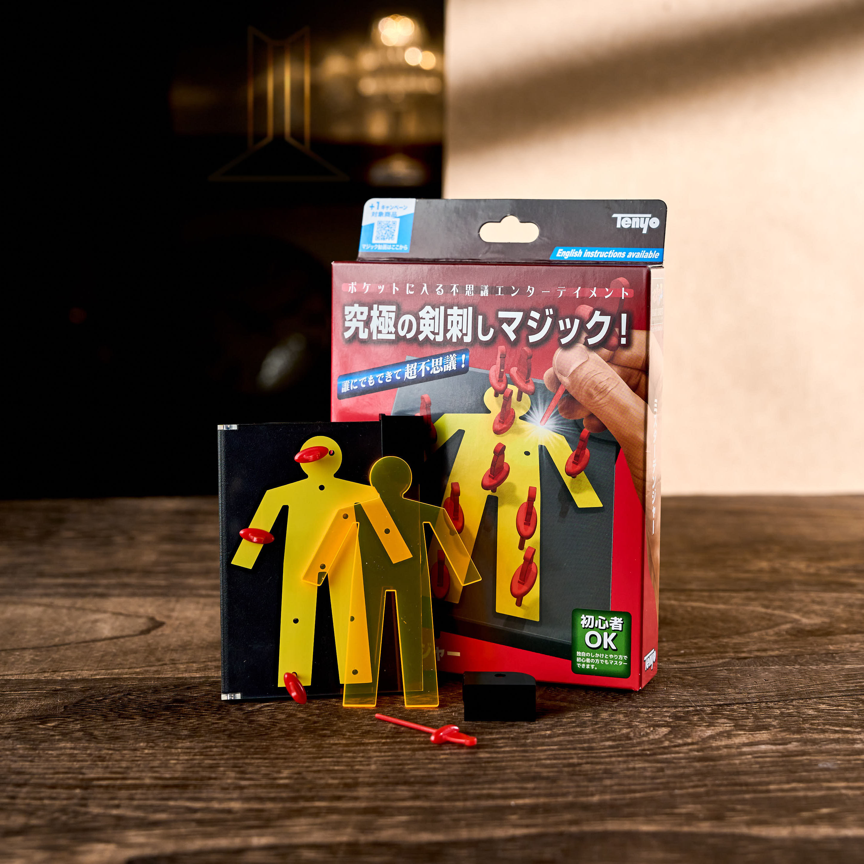 Insert a solid, person-shaped figurine into the case, and close the lid. The lid contains many small holes directly above the figurine. One by one, insert a sword into each hole, passing each blade right through the person! When you remove the swords and open the lid, the figurine is completely intact, without a single hole or scratch on its body!The figurine fits exactly into the case, with no place to escape the swords.